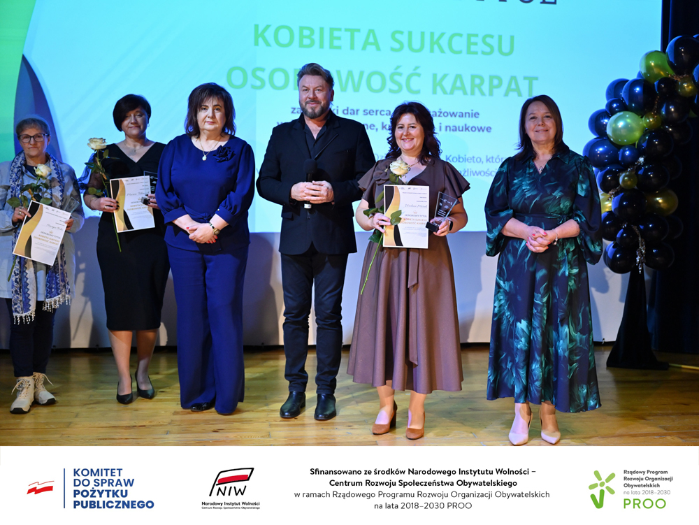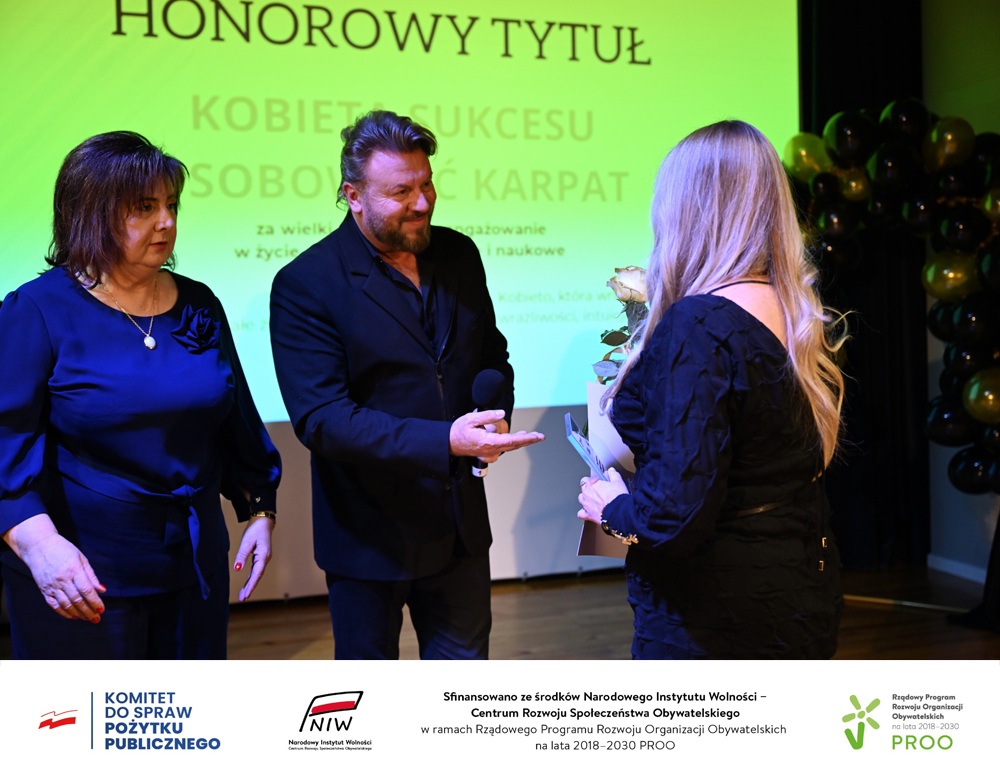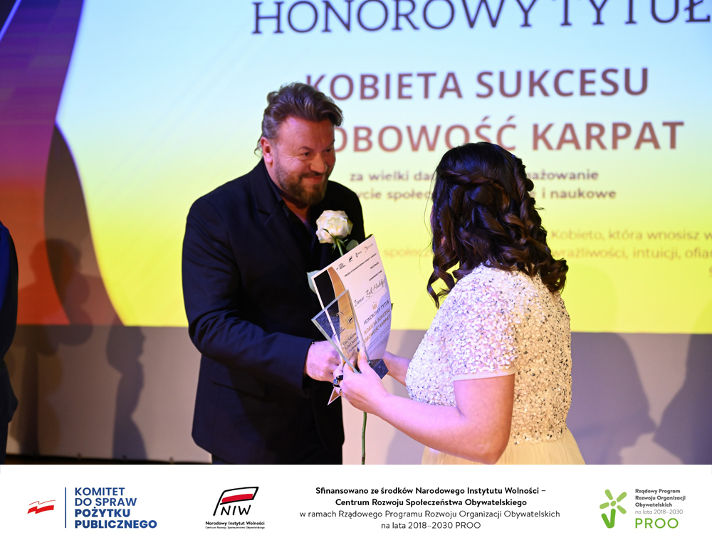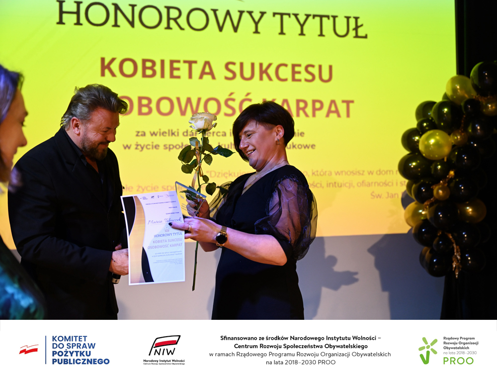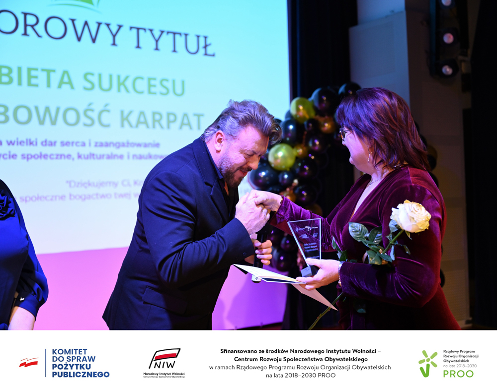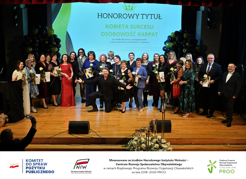 Podczas uroczystej Gali uhonorowaliśmy kobiety, które zmieniają świat swoją pracą, pasją, talentem i sercem. Kobiety z różnych dziedzin: od sztuki, kultury i sportu, po działalność edukacyjną, społeczną i publiczną. W tym roku prestiżową statuetkę odebrali również wyróżniający się mężczyźni – dr Andrzej Kraska Burmistrz Miasta i Gminy Sokołów Młp oraz dr ks. Tomasz Bierzyński; działalność prospołeczna obu Panów budzi ogromny szacunek. Gościem Specjalnym wieczoru był wszechstronny artysta – Michał Milowicz , który miał zaszczyt wręczać Kobietom Sukcesu kwiaty, a później zaprezentował niesamowity, energetyczny koncert. Artystycznego blasku dodali: Julia Honkisz, Wojciech Błażej, Stokrotki. Dziękujemy KGW Aktywni Razem Wólka Sokołowska za bajeczną oprawę i pyszny poczęstunek. Ogrom wdzięczności kierujemy do: @Burmistrza Miasta i Gminy Sokołów Młp. Andrzeja Kraski, Pana Zdzisława Miśka-Przewodniczącego KGW i Sołtysa Wólki Sokołowskiej, Miejsko-Gminnego Ośrodka Kultury, Sportu i Rekreacji w Sokołowie Młp., niezastąpionych Strzelców i Orląt z Jednostki Strzeleckiej 1914. W sposób szczególny dziękujemy Pani Prezes Krystynie Wróblewskiej – za serce, czas i ogrom pracy włożone w to, by Gala była tak wyjątkowa. Dziękujemy, że byliście z nami, że świętowaliście sukcesy kobiet (i nie tylko!) naszego regionu. To była noc, która pokazała, jak wiele dobra, talentu i siły noszą w sobie ludzie Karpat.