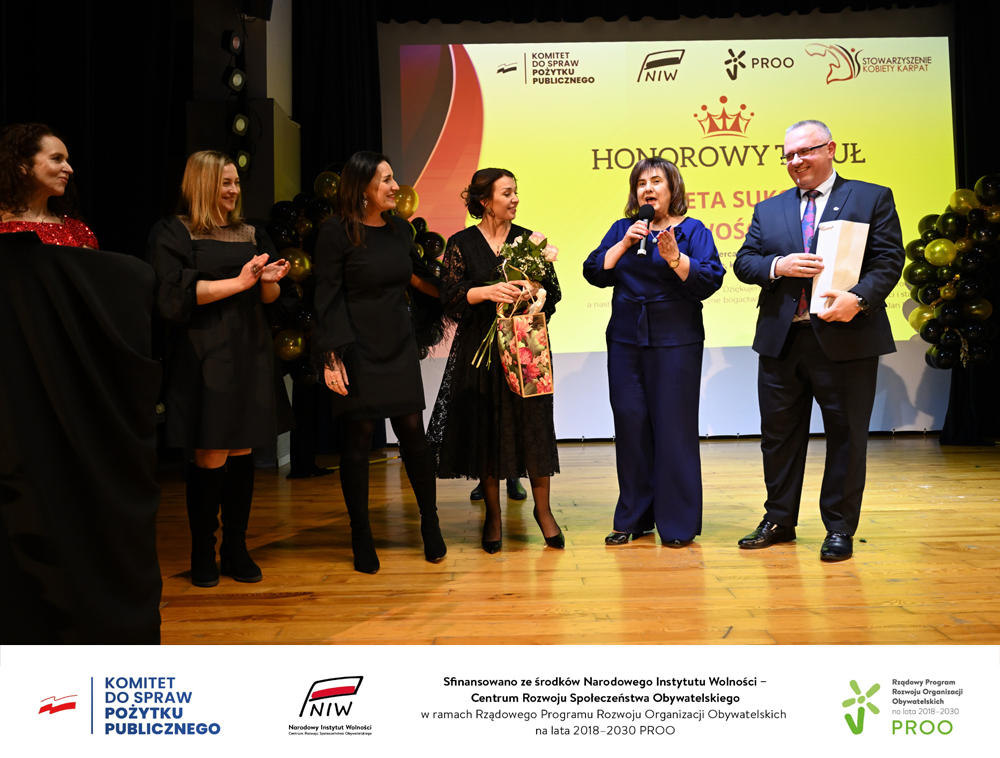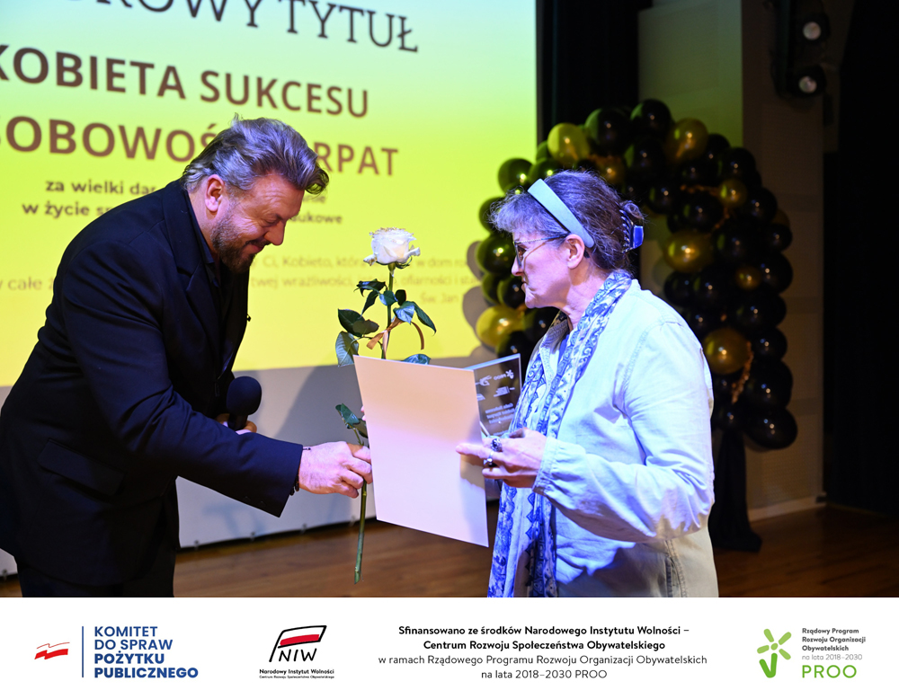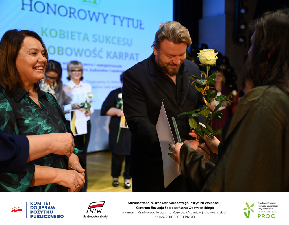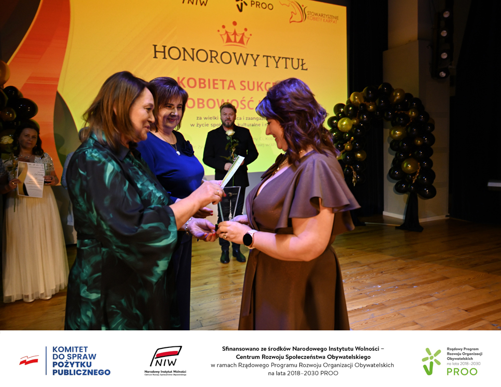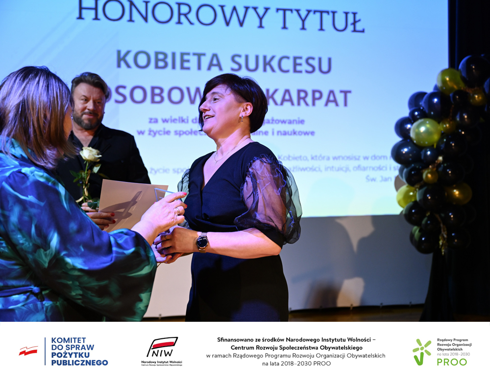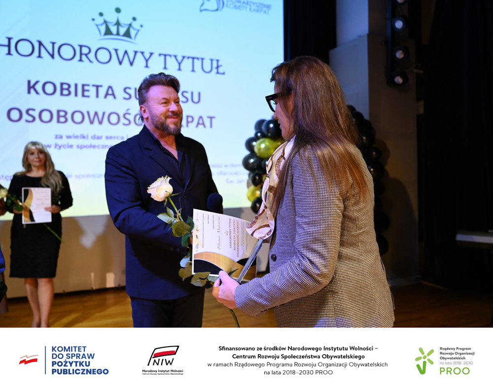 Podczas uroczystej Gali uhonorowaliśmy kobiety, które zmieniają świat swoją pracą, pasją, talentem i sercem. Kobiety z różnych dziedzin: od sztuki, kultury i sportu, po działalność edukacyjną, społeczną i publiczną. W tym roku prestiżową statuetkę odebrali również wyróżniający się mężczyźni – dr Andrzej Kraska Burmistrz Miasta i Gminy Sokołów Młp oraz dr ks. Tomasz Bierzyński; działalność prospołeczna obu Panów budzi ogromny szacunek. Gościem Specjalnym wieczoru był wszechstronny artysta – Michał Milowicz , który miał zaszczyt wręczać Kobietom Sukcesu kwiaty, a później zaprezentował niesamowity, energetyczny koncert. Artystycznego blasku dodali: Julia Honkisz, Wojciech Błażej, Stokrotki. Dziękujemy KGW Aktywni Razem Wólka Sokołowska za bajeczną oprawę i pyszny poczęstunek. Ogrom wdzięczności kierujemy do: @Burmistrza Miasta i Gminy Sokołów Młp. Andrzeja Kraski, Pana Zdzisława Miśka-Przewodniczącego KGW i Sołtysa Wólki Sokołowskiej, Miejsko-Gminnego Ośrodka Kultury, Sportu i Rekreacji w Sokołowie Młp., niezastąpionych Strzelców i Orląt z Jednostki Strzeleckiej 1914. W sposób szczególny dziękujemy Pani Prezes Krystynie Wróblewskiej – za serce, czas i ogrom pracy włożone w to, by Gala była tak wyjątkowa. Dziękujemy, że byliście z nami, że świętowaliście sukcesy kobiet (i nie tylko!) naszego regionu. To była noc, która pokazała, jak wiele dobra, talentu i siły noszą w sobie ludzie Karpat.