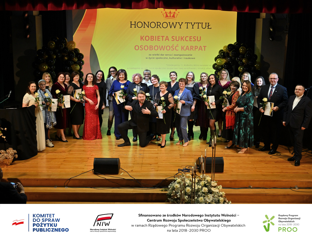 Podczas uroczystej Gali uhonorowaliśmy kobiety, które zmieniają świat swoją pracą, pasją, talentem i sercem. Kobiety z różnych dziedzin: od sztuki, kultury i sportu, po działalność edukacyjną, społeczną i publiczną. W tym roku prestiżową statuetkę odebrali również wyróżniający się mężczyźni – dr Andrzej Kraska Burmistrz Miasta i Gminy Sokołów Młp oraz dr ks. Tomasz Bierzyński; działalność prospołeczna obu Panów budzi ogromny szacunek. Gościem Specjalnym wieczoru był wszechstronny artysta – Michał Milowicz , który miał zaszczyt wręczać Kobietom Sukcesu kwiaty, a później zaprezentował niesamowity, energetyczny koncert. Artystycznego blasku dodali: Julia Honkisz, Wojciech Błażej, Stokrotki. Dziękujemy KGW Aktywni Razem Wólka Sokołowska za bajeczną oprawę i pyszny poczęstunek. Ogrom wdzięczności kierujemy do: @Burmistrza Miasta i Gminy Sokołów Młp. Andrzeja Kraski, Pana Zdzisława Miśka-Przewodniczącego KGW i Sołtysa Wólki Sokołowskiej, Miejsko-Gminnego Ośrodka Kultury, Sportu i Rekreacji w Sokołowie Młp., niezastąpionych Strzelców i Orląt z Jednostki Strzeleckiej 1914. W sposób szczególny dziękujemy Pani Prezes Krystynie Wróblewskiej – za serce, czas i ogrom pracy włożone w to, by Gala była tak wyjątkowa. Dziękujemy, że byliście z nami, że świętowaliście sukcesy kobiet (i nie tylko!) naszego regionu. To była noc, która pokazała, jak wiele dobra, talentu i siły noszą w sobie ludzie Karpat.